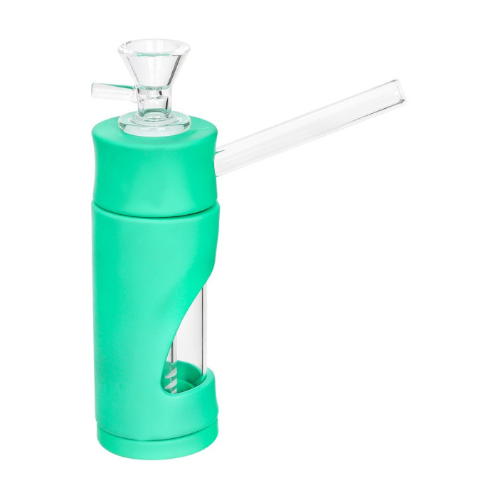 Не каждый компактный девайс способен совместить визуальный контроль, защиту и стабильную фильтрацию, но баблер Фифелка как раз из этой категории! Небольшой ручной формат дополнен продуманной защитой, благодаря чему устройство спокойно переживает регулярные падения при активном использовании. Стеклянная основа приоткрыта – силиконовый корпус оставляет смотровое окно, позволяя видеть уровень воды и гипнотизирующую работу устройства в процессе.