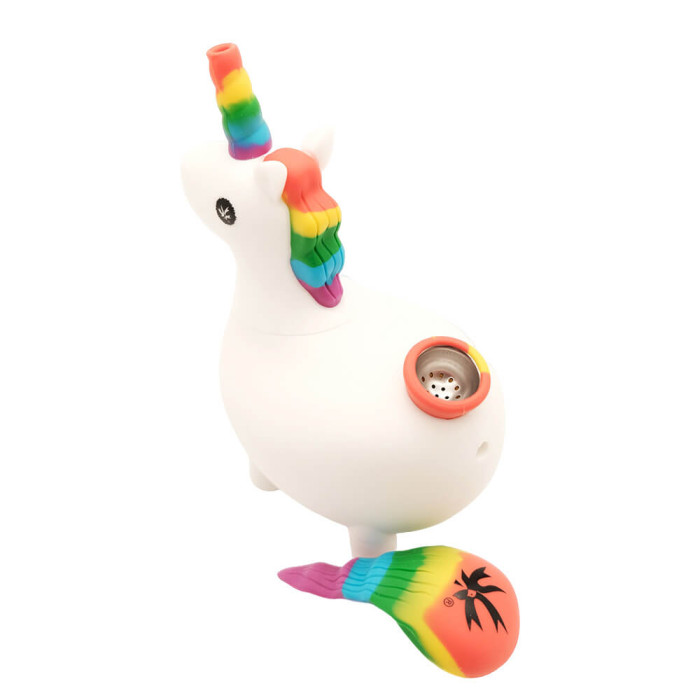 Под хвостом расположено турбо-отверстие, которое позволяет регулировать поток воздуха и очищать камеру от оставшегося дыма в конце затяжки. Съемная голова облегчает уход: ее легко снять и тщательно почистить, поддерживая девайс в идеальном состоянии без лишних хлопот. Все это привлекает, чтобы купить бонг Unikorn из мягкого силикона, который прекрасно сочетает в себе эстетику, функциональность и долговечность.