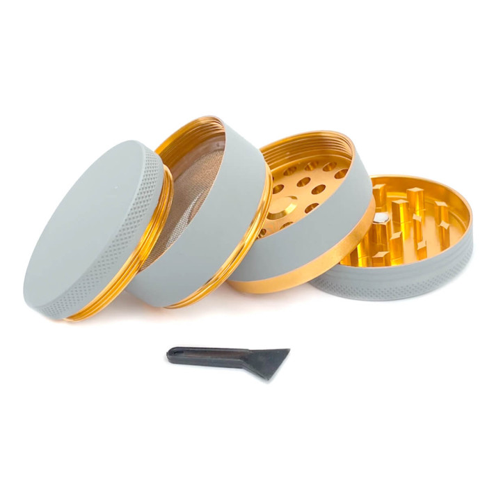 Металлический гриндер Classic Gray — это как true стонер на тусе: не выпендривается, но знает свое дело. Снаружи — сдержанный, почти невидимый серый корпус, но стоит его открыть — и внутри блестит золотистое покрытие. Такой дизайн оценят те, кто любит, чтобы было стильно, компактно, без лишнего визуального шума.