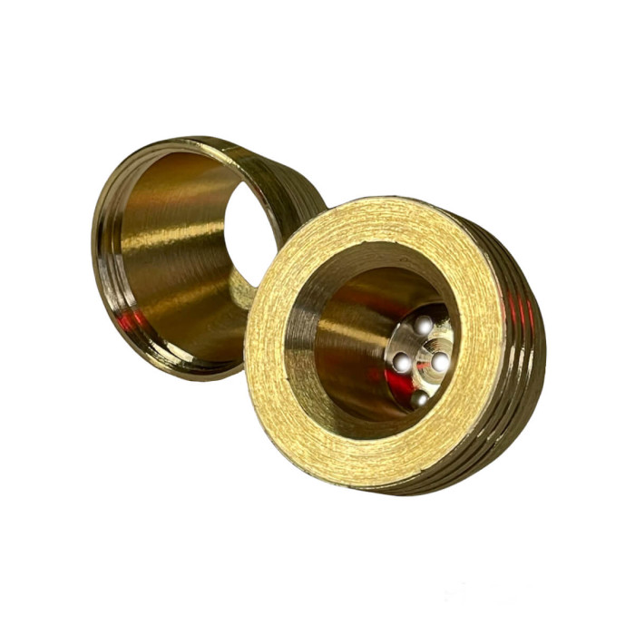Конструкция разборная и построена вокруг съёмной внутренней конусообразной части. Корпус напёрстка Медовик полностью выполнен из металла с износостойким золотистым покрытием. Этот элемент можно открутить и установить в нижнюю часть аксессуара, меняя его посадочный диаметр. За счёт этого железный колпак Медовик подходит практически под любое горлышко водного аппарата, обеспечивая плотное и стабильное прилегание. Металл устойчив к высоким температурам, не деформируется и сохраняет форму даже при регулярной эксплуатации. Внутренняя геометрия рассчитана на ровное прохождение дыма и контролируемый прогар.